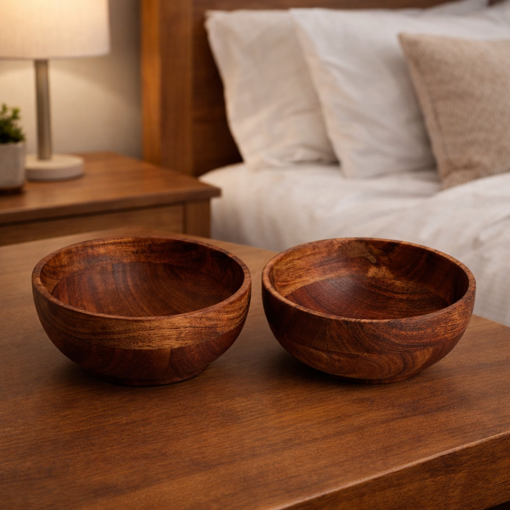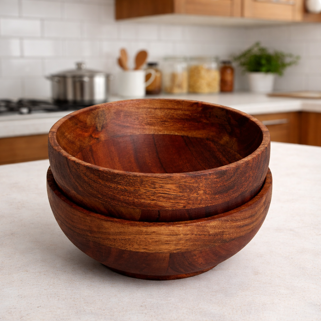 Acacia Wooden Multipurpose Round Bowl Set for Soup, Salad, Fruits, Vegetable,