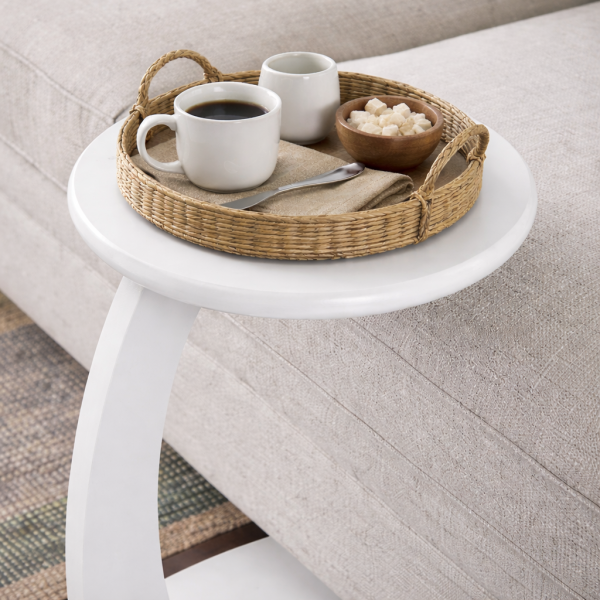 - C SHAPED DESIGN :This C table end table easy to slide the feet underneath your sofa, couch or bed , make your snacks, coffee, remotes, phones, books easier to reach。