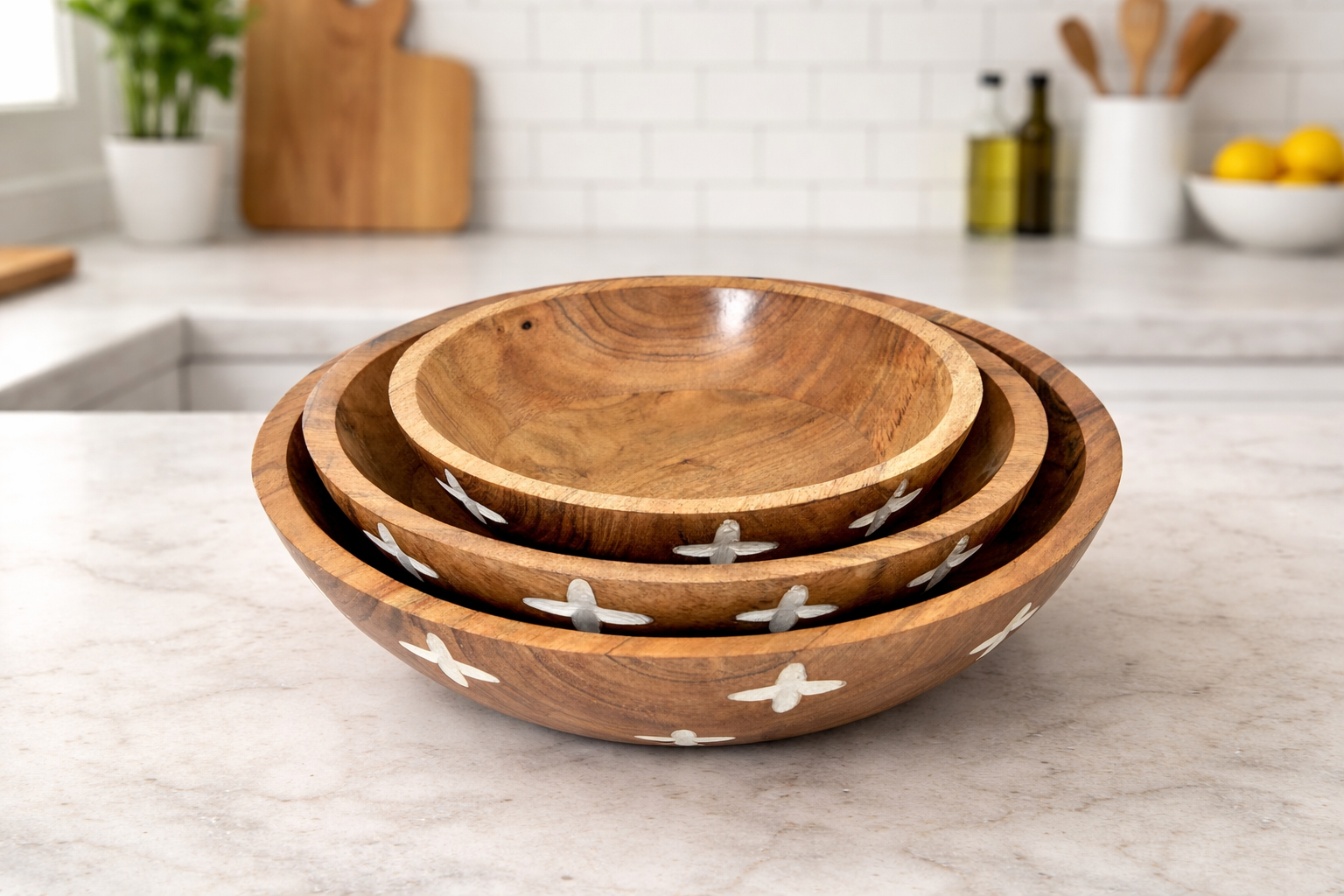 LTD Acacia Wood Classic Bowl, Set of 3