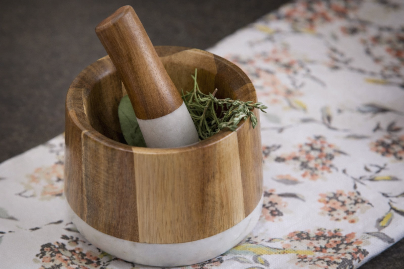 Tablecraft Elements Collection Mortar & Pestle, 5.75" x 5" x 5.62", Marble/Acacia