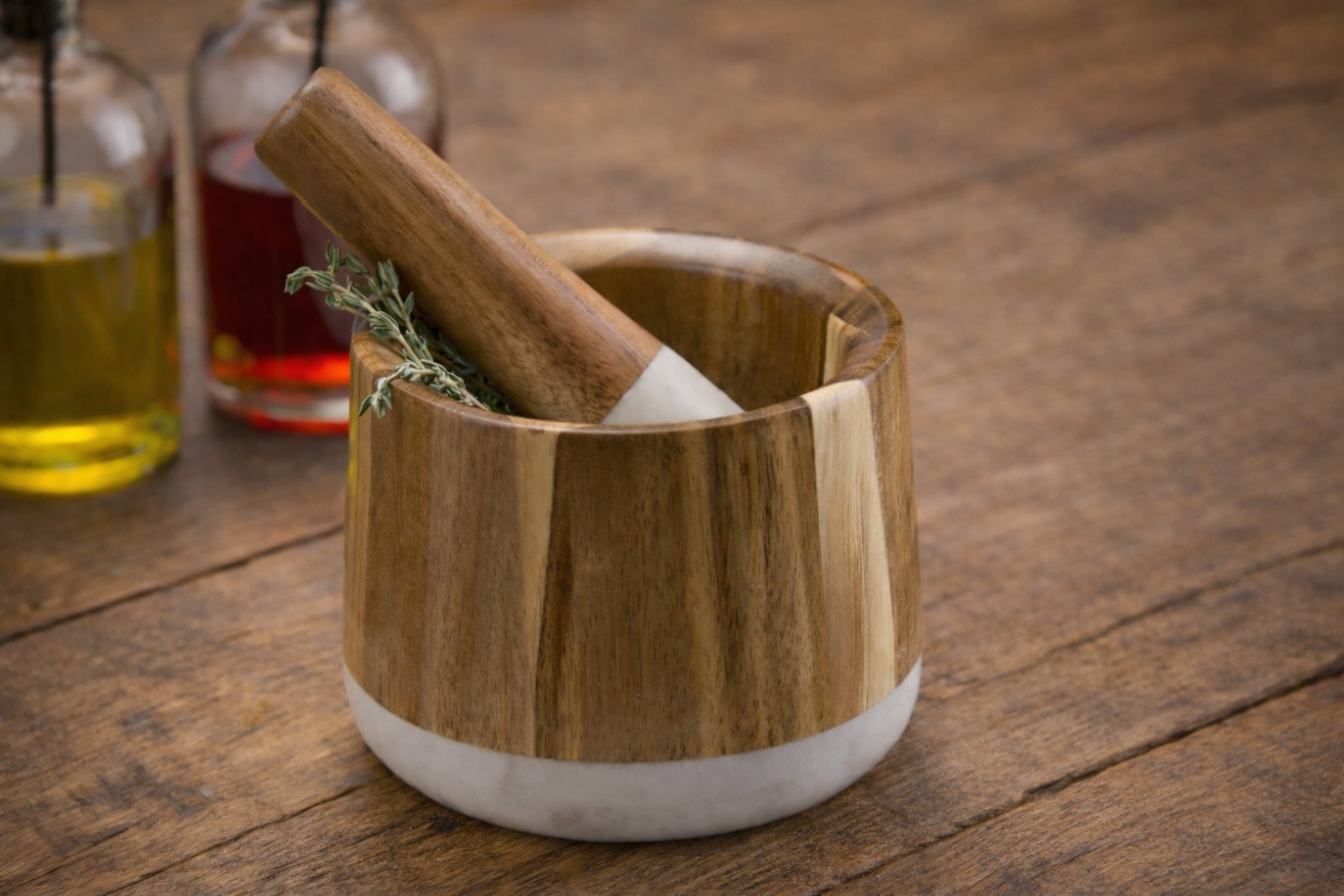 Tablecraft Elements Collection Mortar & Pestle, 5.75″ x 5″ x 5.62″, Marble/Acacia