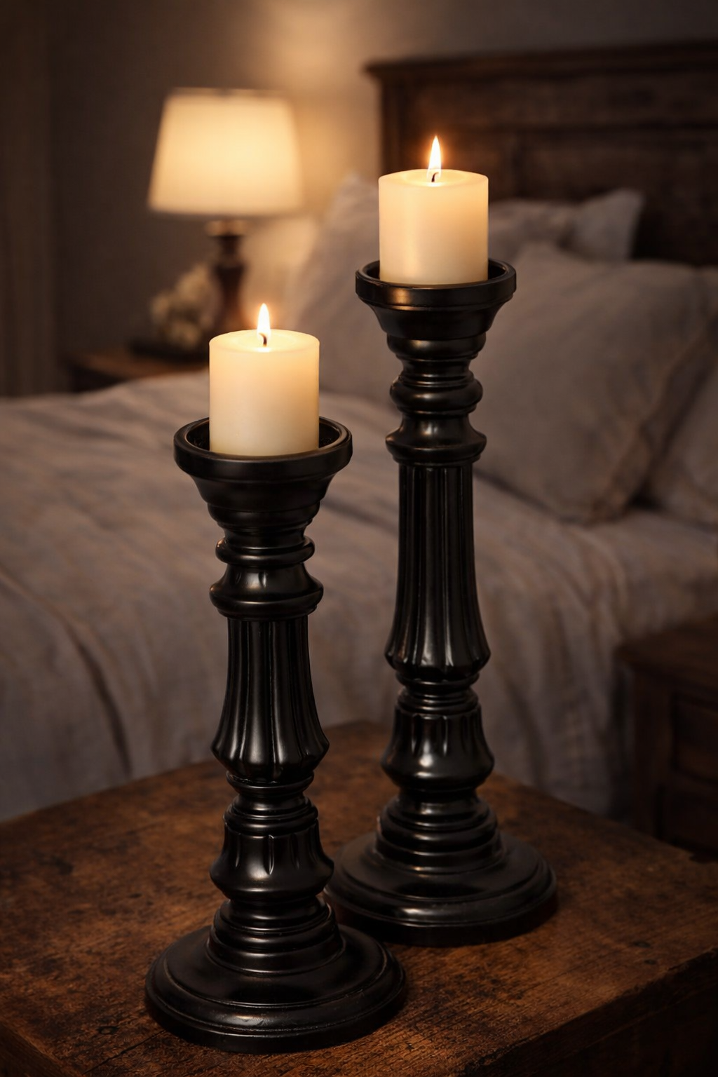 Beautifully handcrafted wooden candle holders with a distressed finish, perfect for vintage and farmhouse-style décor