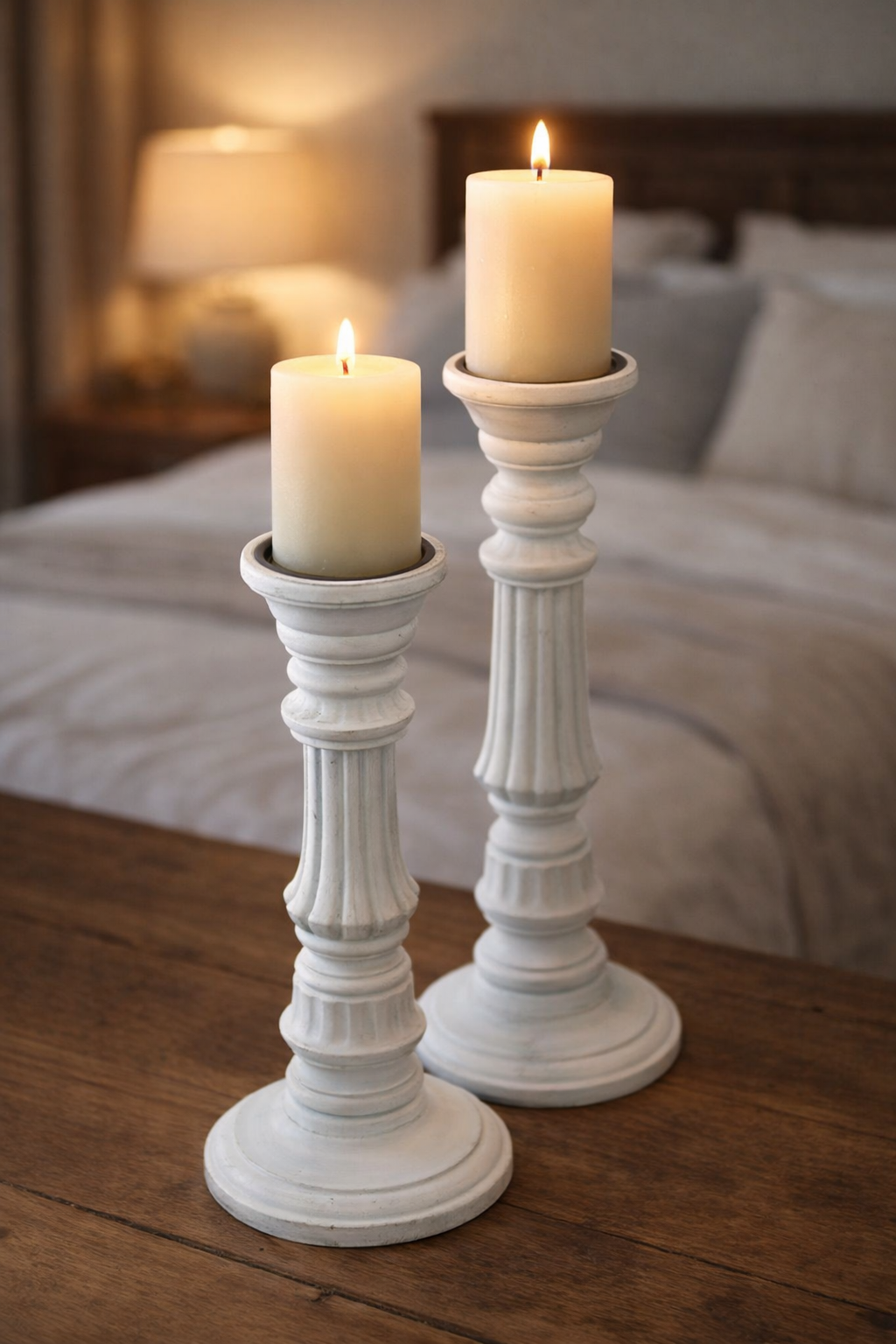 Beautifully handcrafted wooden candle holders with a distressed finish, perfect for vintage and farmhouse-style décor.