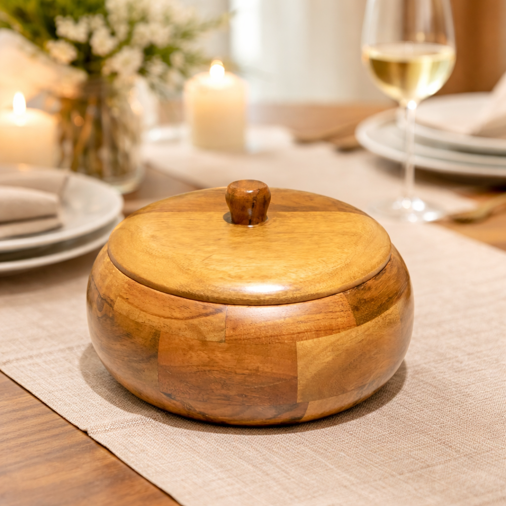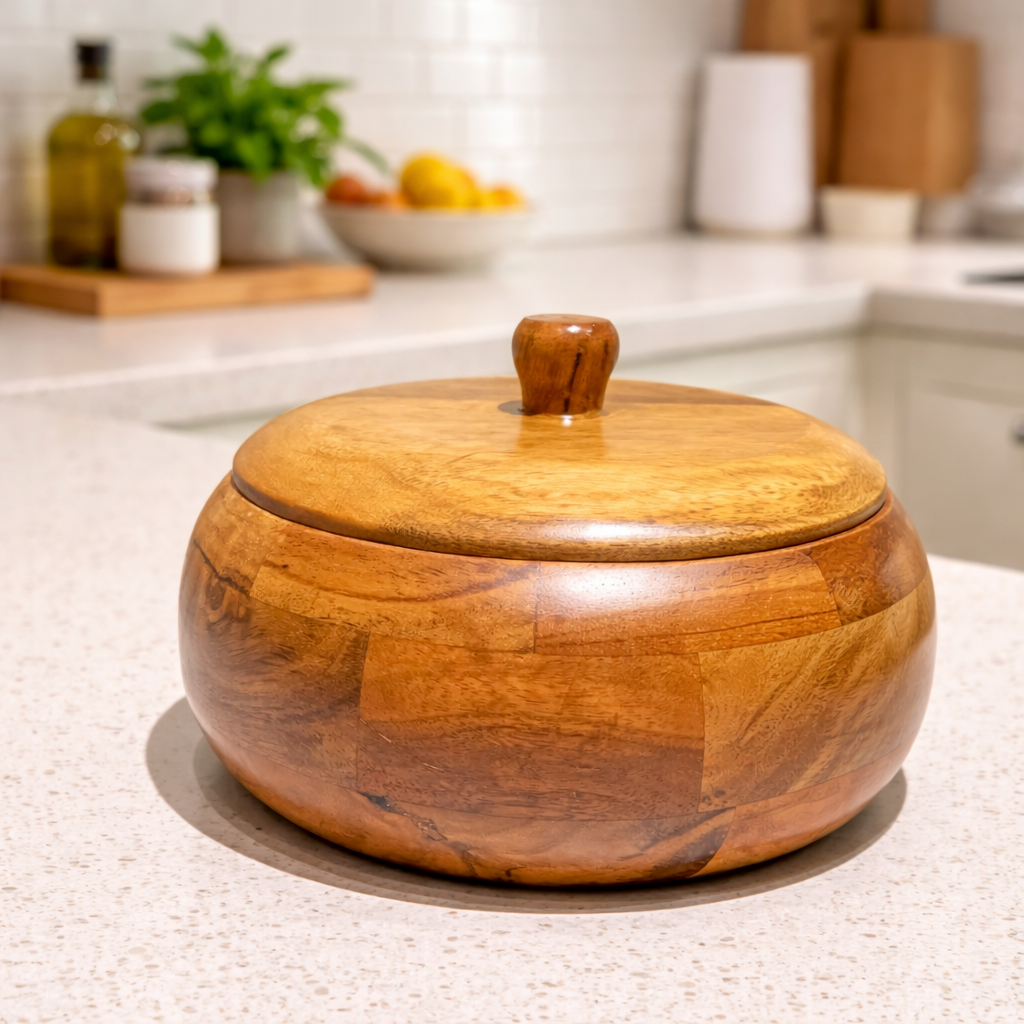 Wooden Casserole with Lid Cover, Roti & Chapati Storage Box Container with Lid