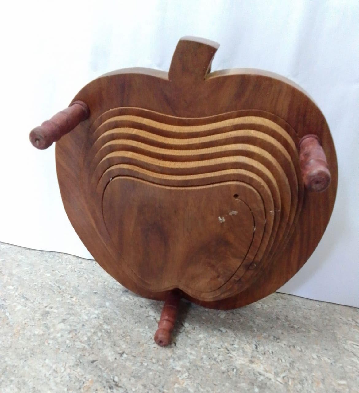 Wooden Portable & Foldable Apple Shape basket With Handle & Stand For Kitchen & Dining Table