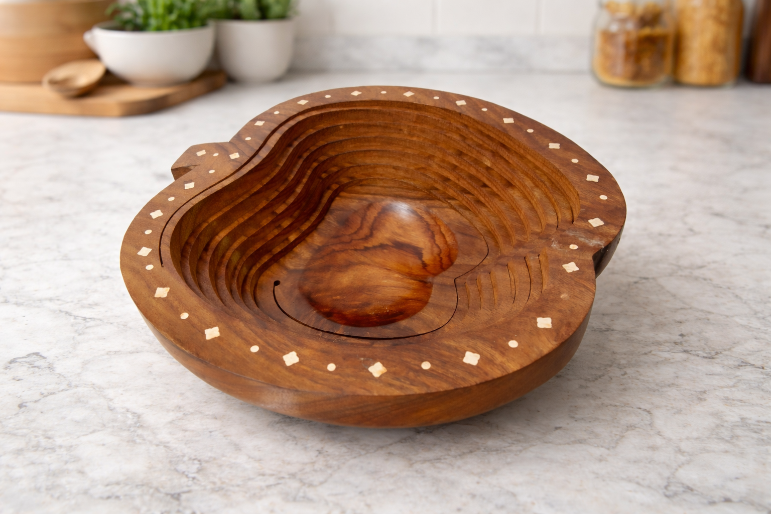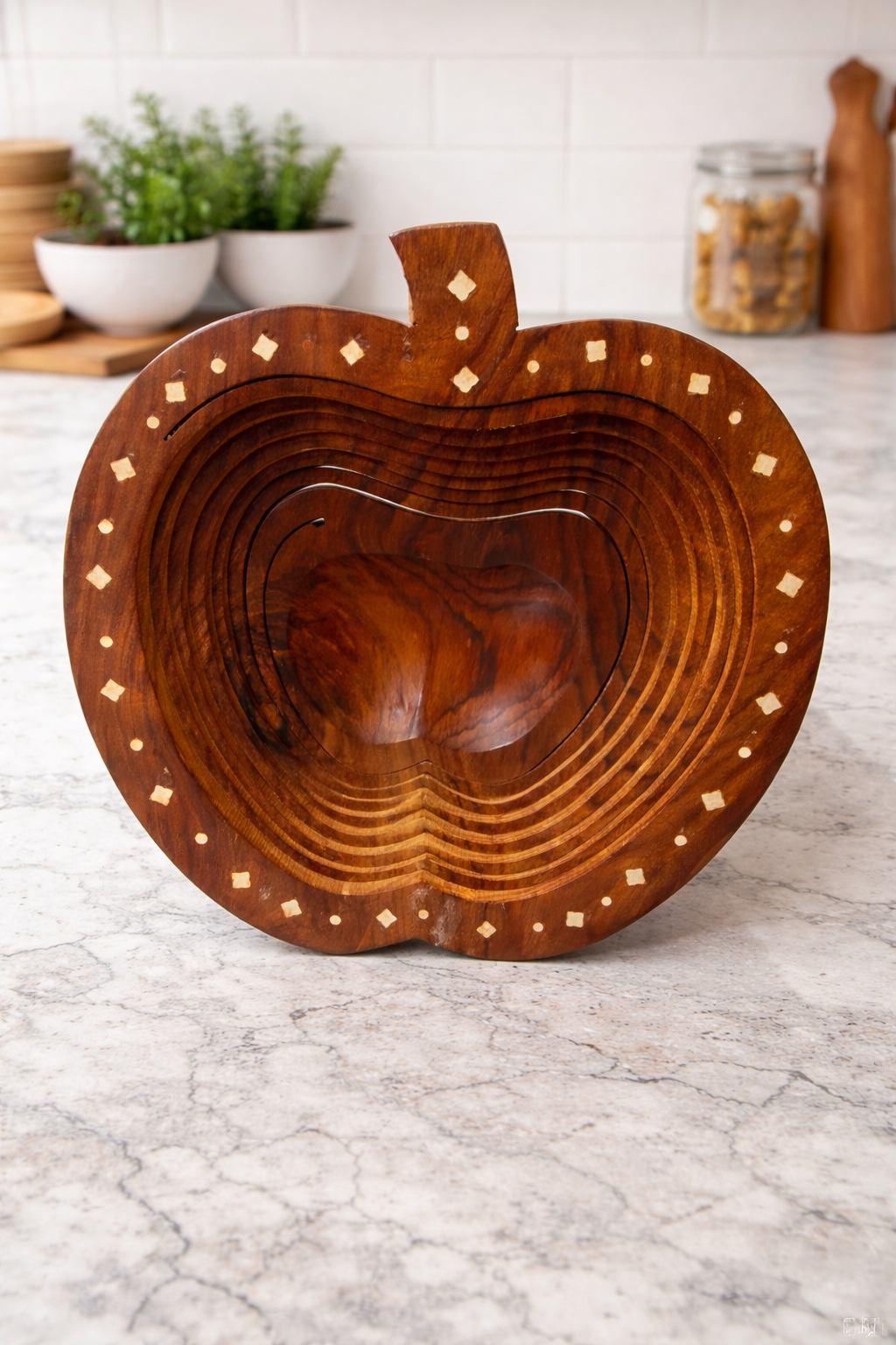 Wooden Portable & Foldable Apple Shape Basket with Handle & Stand for Kitchen & Dining Table