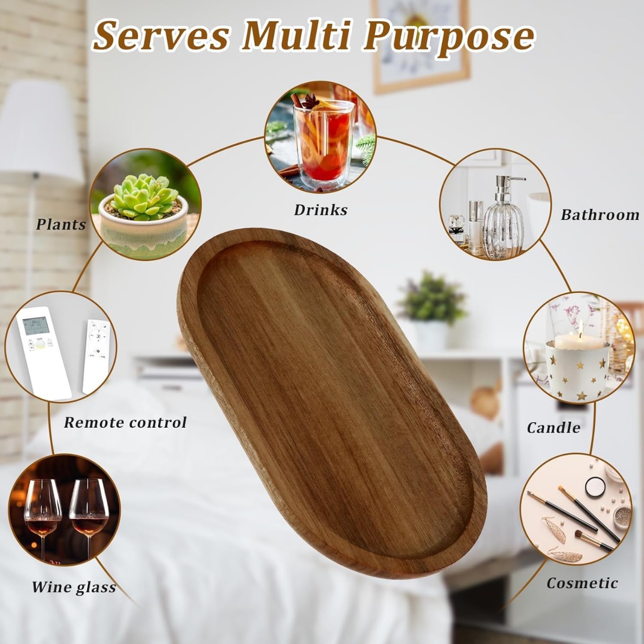 【Package Included】 You will receive an acacia wood oval tray, the product size is approximately 7.8*4.6*0.6 inch/20*11.8*1.5 cm, the compact size can be stacked and stored, saving your space